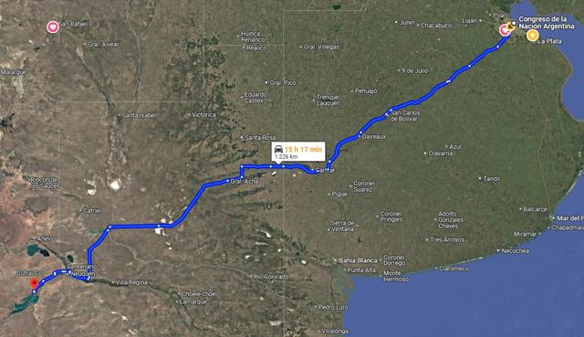 从布宜诺斯艾利斯市需要行驶1,226公里,穿越布宜诺斯艾利斯省、拉潘帕省和里奥内格罗省,最终到达内乌肯首府。